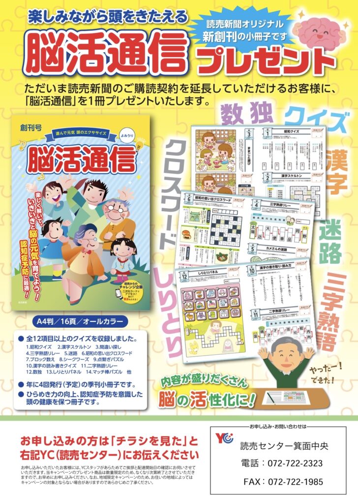 新聞で”脳活”「脳活通信」プレゼント!