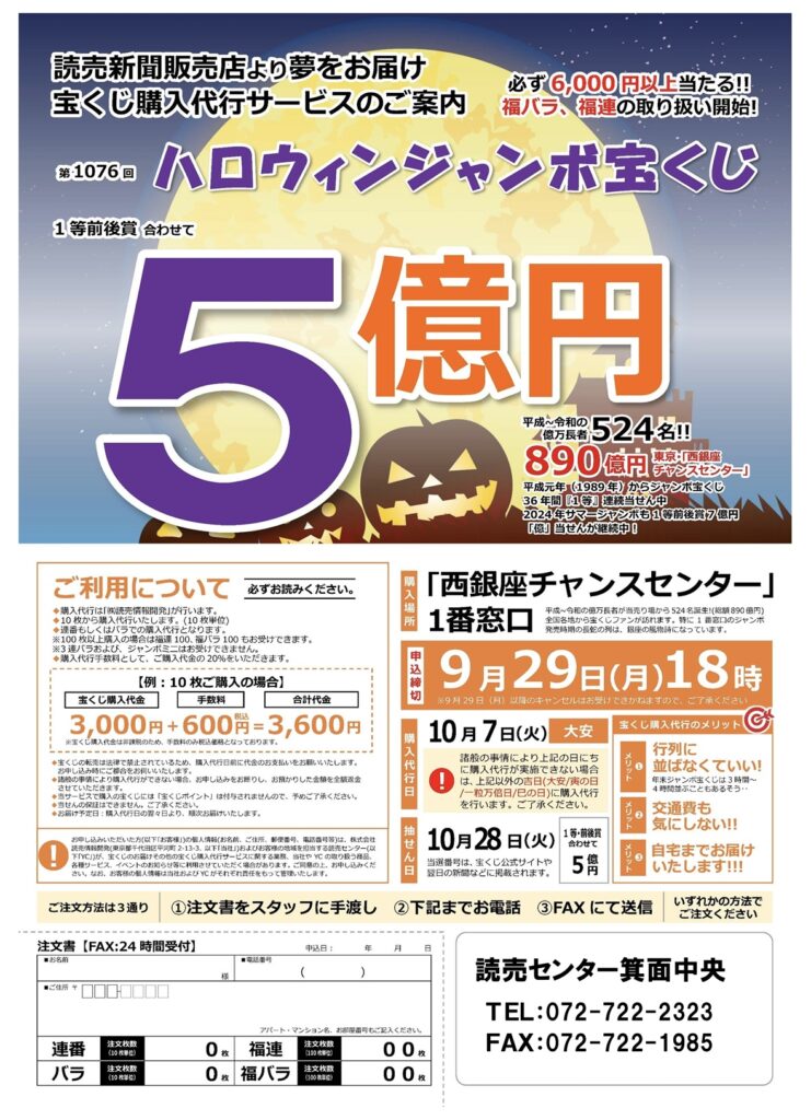 第1076回 ハロウィンジャンボ宝くじの購入代行受付を開始します!