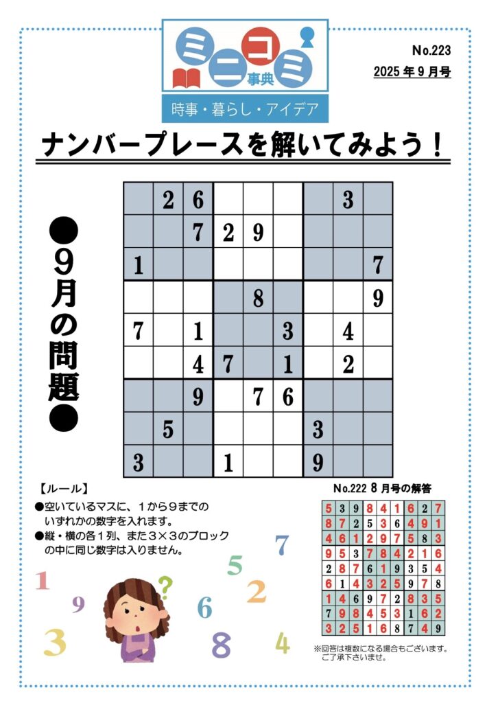 ナンバープレースを解いてみよう!No223