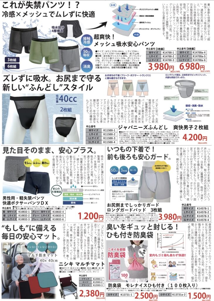 その他、メッシュ吸水安心パンツや安心マットなどなど