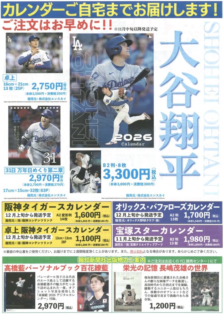 毎年好評の「ジャイアンツカレンダー」や、「ジャイアンツ選手カレンダー」などその他、発売開始!