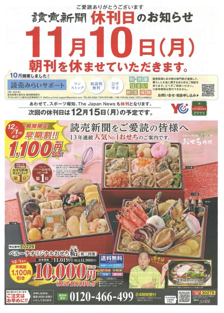 【11/10】本日の朝刊は休刊日です。