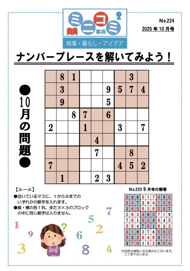 ★空いているマスに、1から9までのいずれかの数字を入れます。
