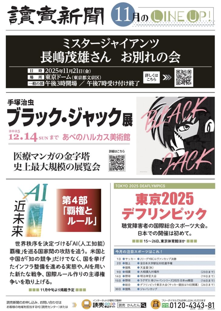 11月の読売新聞紙面