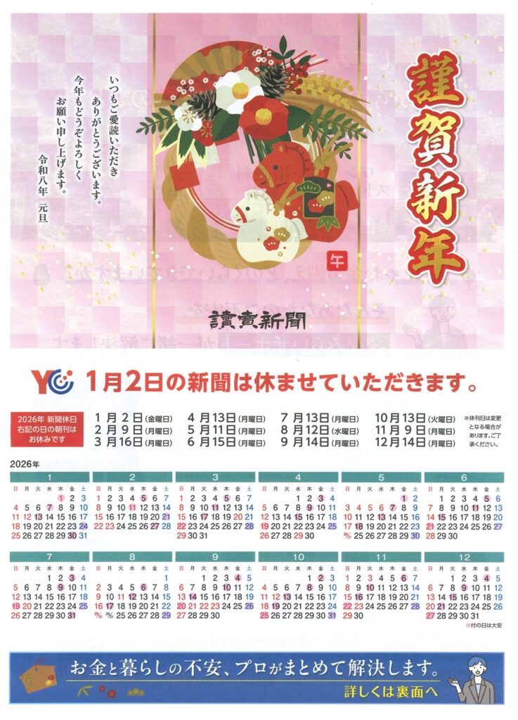 明日 1月2日(金)は、朝刊を休ませていただきます。