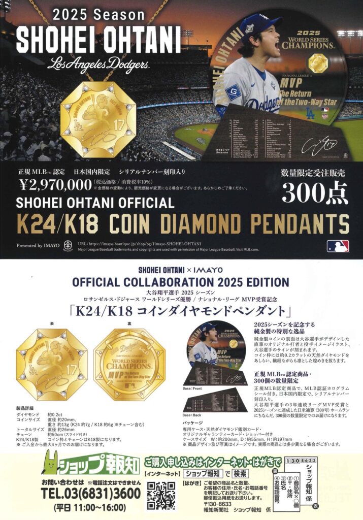 大谷翔平選手 コインダイヤモンドペンダント 販売開始!