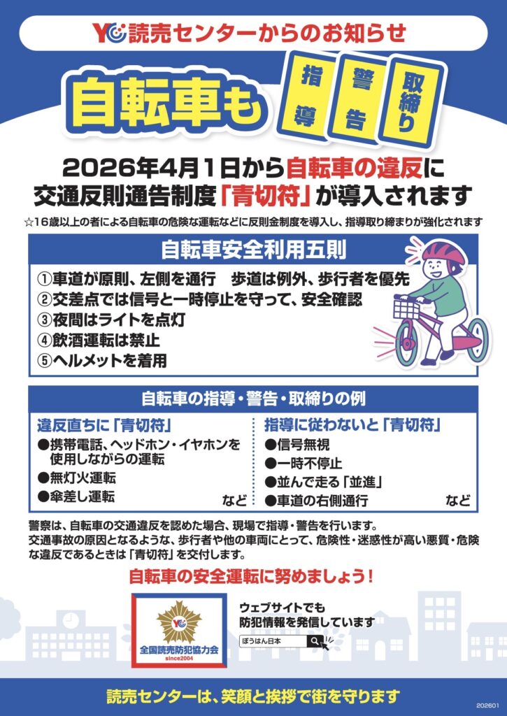 2026年4月1日から自転車の違反に【青切符】
