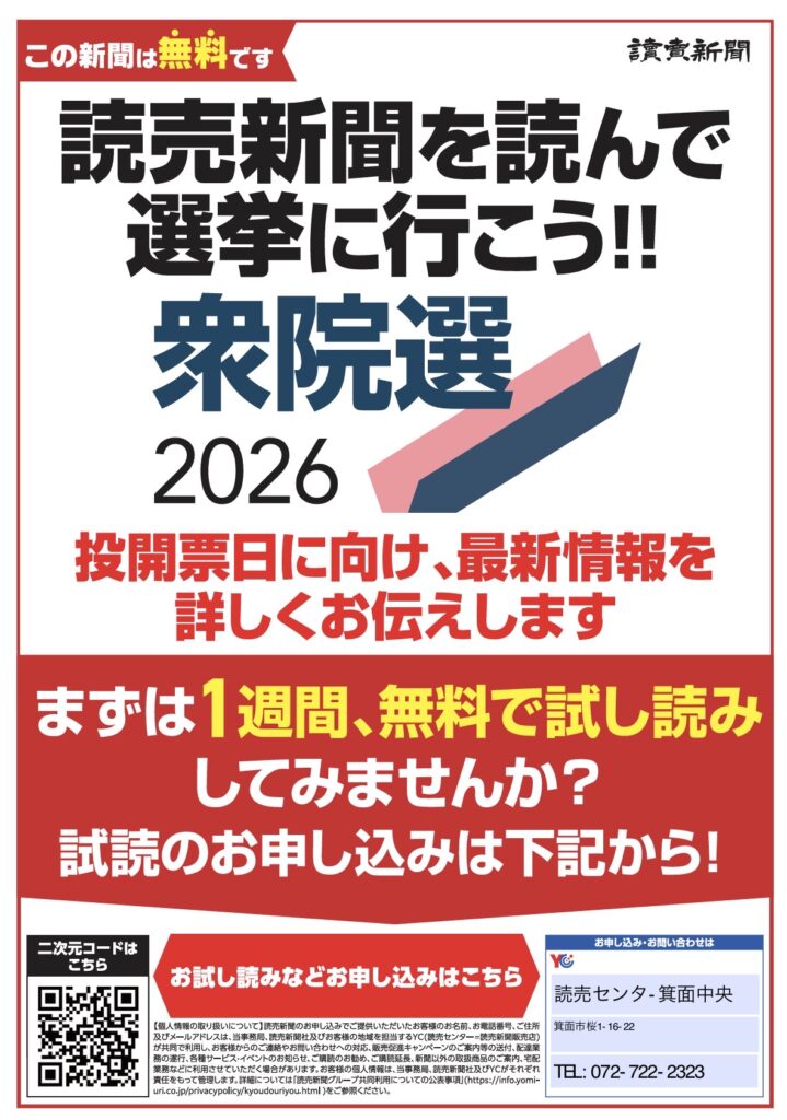 衆議院選挙期間中、無料で読売新聞をお届けします。